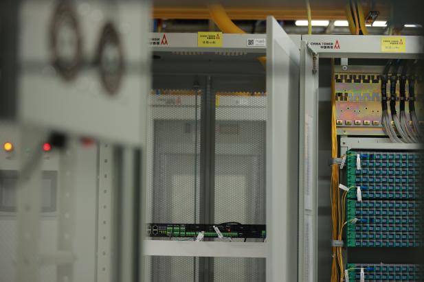 走进这座精心规划的机房,线缆整齐排列如束,设备布置井然有序。在竺伟文看来,这里就是整条线路网络信号的“大脑”与“心脏”。上海铁塔为西延伸段的通信机房配备了稳定的电源与智能化动环监控系统,为运营商提供可靠支撑。