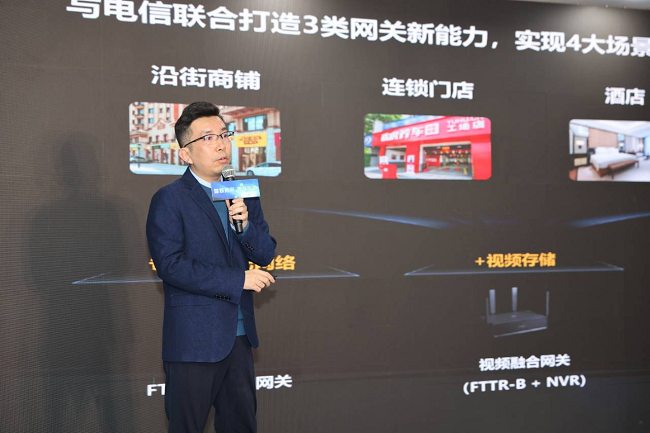 中国电信四川公司商业客户中心总经理莫小燕表示:"四川电信始终秉持推进’服务型、科技型、安全型’三型企业建设,依托七大新兴战略性产业布局,持续提升FTTR-B网络服务质量。通过FTTR-B视频安防一体机与高阶算力网关的视频AI算法、云存储及智能分析能力,重构企业IT与网络管理范式,为酒店及连锁企业打造的新型门店信息化中枢,实现运营效率与安防能力的双重跃升。”