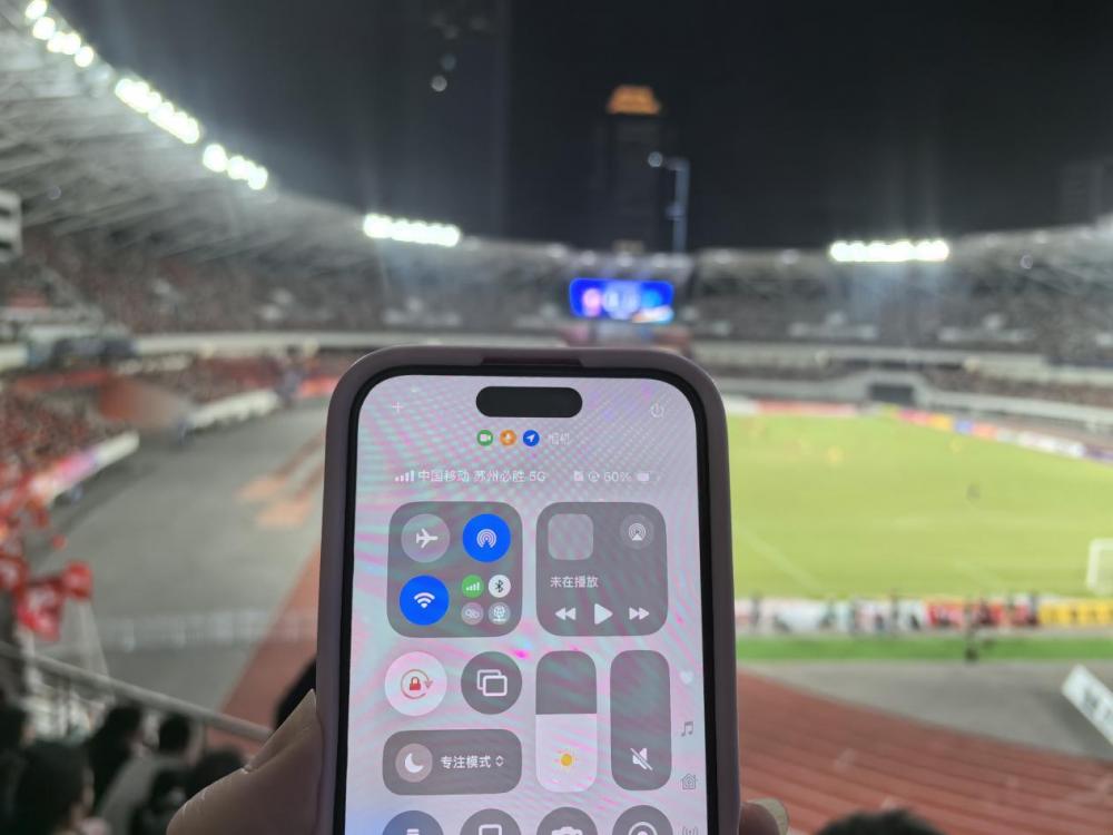 经过精心部署和高效执行,苏州移动成功保障了现场海量用户的网络需求。实测数据显示,比赛期间体育场区域移动网络下载速率高达843Mbps,上传速率达141Mbps,用户还可登记显示“中国移动 苏州必胜”UElog球迷标识。赛事高峰时段,移动网络同时在线用户数超过1.2万人次,整场比赛产生的移动网络总业务量达到2666.6GB。稳定、高速的网络体验,让球迷得以实时分享精彩瞬间,畅享数字化观赛乐趣。