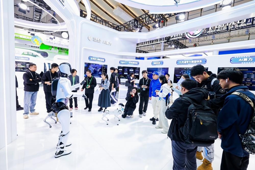 在互联网之光的中国移动展区,九天通专大模型体系、九天焕新平台、Agent+一体机等展项备受关注。“通过这些平台,AI技术转化就能变成‘即取即用’的服务,大幅降低AI使用门槛,可以大幅助力各行各业通过AI转型能拥抱智能变革。”展区工作人员介绍道。