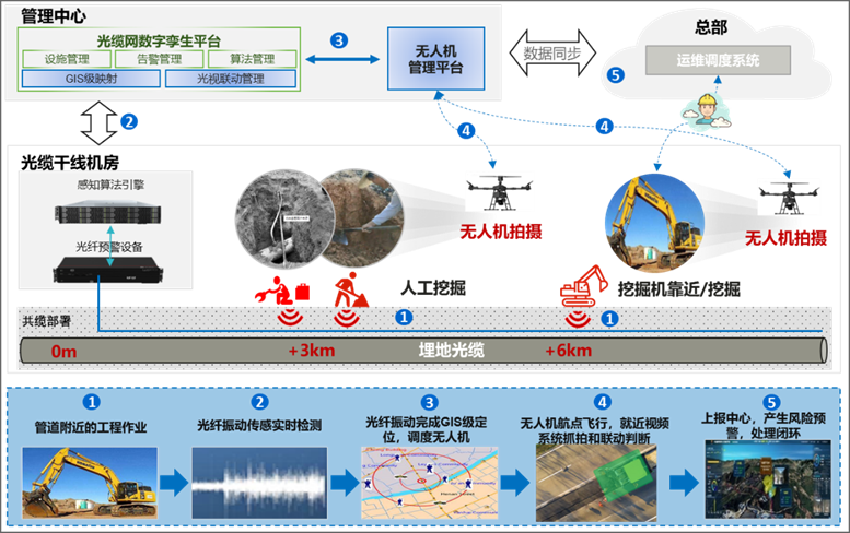 据介绍,湖南移动携手华为等合作伙伴,融合“数字孪生”+“低空网联”+“光视联动”三大技术,实现了对光缆网外部入侵、隐患及故障的智能监测,并建立起“人机协同”的体系化精准调度能力。